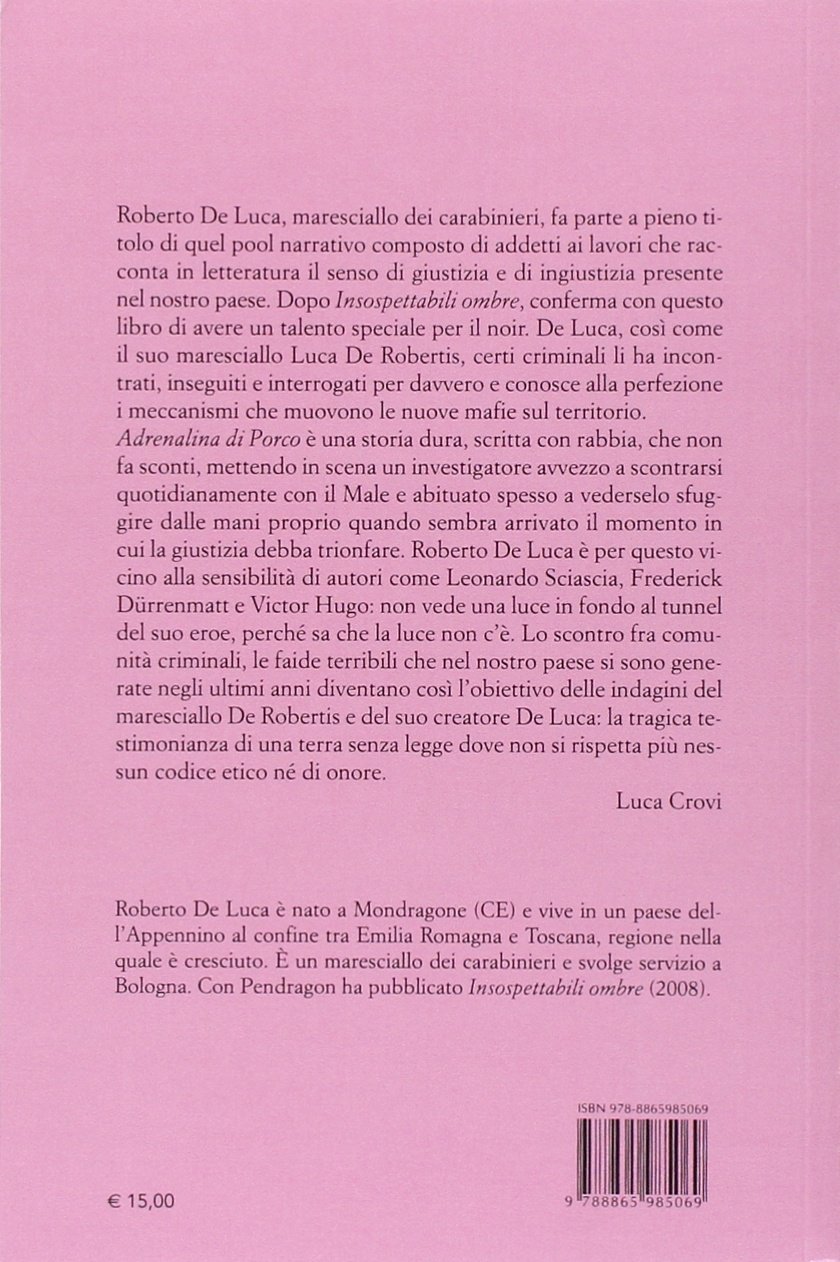 Pendragon Dettaglio Libro. A diciotto anni si è arruolato nell'arma dei carabinieri, per la quale ora svolge servizio a bologna come maresciallo. Circle collection by roberto giacomucci & nicola cerasa. Nasci em santa isabel (sp), em 18 de abril de 1966. Roberto de luca torna nelle librerie con adrenalina di porco. Roberto de luca, maresciallo dei carabinieri, fa parte a pieno titolo di quel pool narrativo composto 'adrenalina di porco' è una storia dura, scritta con rabbia, che non fa sconti, mettendo in scena un investigatore avvezzo a scontrarsi quotidianamente con il male e abituato spesso a vederselo sfuggire. 116,370 likes · 4,324 talking about this. Voir plus d'idées sur le thème architecture cool, conception de canapé, petit fauteuil design. Sou filho dos nordestinos antonio e eunice. De luca, come descrive con ironica esperienza la routine della caserma dove vive il suo protagonista pari grado, così parla a ragion veduta di efferati delinquenti per averli catturati e interrogati davvero, apre spiragli narrativi sui problemi del mondo carcerario e conosce a fondo i perversi meccanismi. Storia di una banda criminale, edito da pendragon, dopo il thriller insospettabili ombre per gli stessi tipi nel 2008. Acquista online adrenalina di porco di roberto de luca in formato: Lo scontro fra comunità criminali, le faide terribili che nel nostro paese si sono generate negli ultimi anni diventano così l'obiettivo delle indagini del maresciallo de robertis e del suo creatore de luca: Roberto de luca è nato a mondragone (ce) nel 1968, ma è cresciuto e vive in toscana, sull'appennino. Protagonista è ancora luca de robertis, anagramma del nome del suo creatore e, come lui, maresciallo dei carabinieri. Insospettabili ombre (pendragon 2008) è il suo primo romanzo cui.