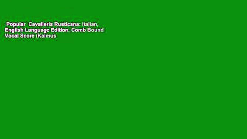 Cavalleria Rusticana Vocal Score . Italian, English Language Edition, Comb Bound Vocal Score (Kalmus.