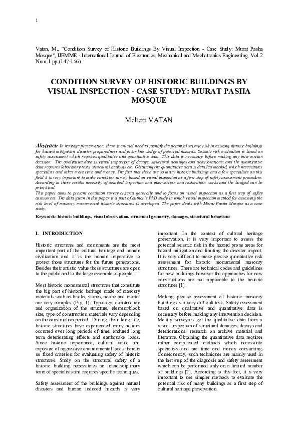 - Pdf Condition Survey Of Historic Buildings By Visual Inspection Case Study Murat Pasha Mosque Meltem Vatan Academia Edu : Rather, It Is Intended For Use In Establishing.