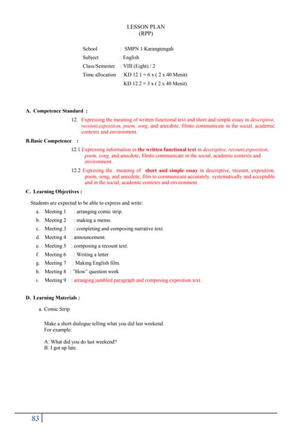 - Lesson Plan 2 1 Syllabus Of English Class X Smt 1 2 . Lesson Planner With Differentiated Instruction.